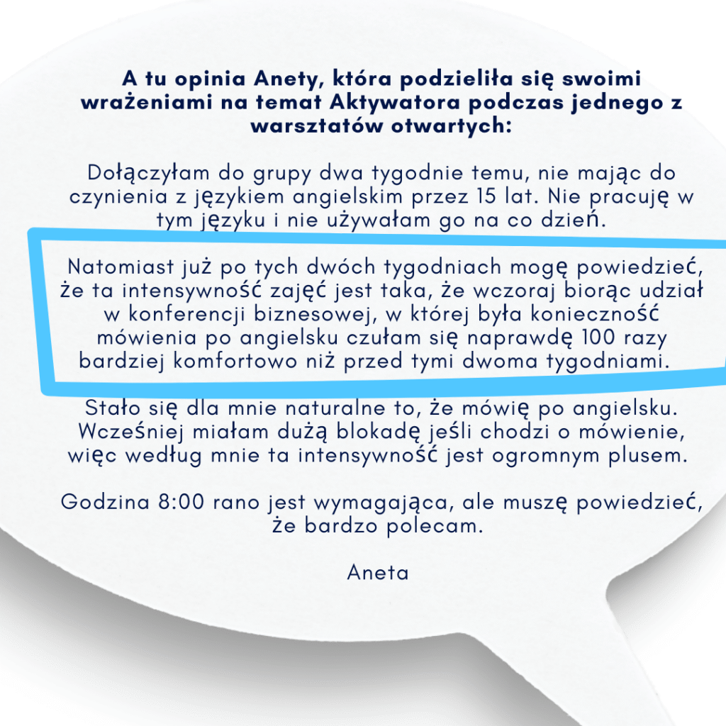 Aktywator to miejsce, w którym angielski stanie sie dla Ciebie narzędziem do komunikacji, a nie źródłem stresu: